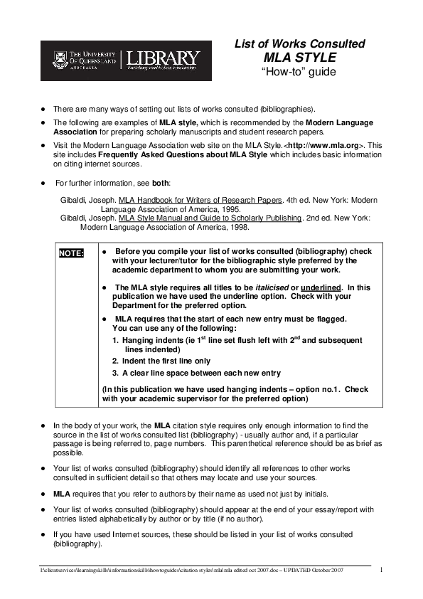 Pdf List Of Works Consulted Mla Style How To Guide Poorva Ghosh Academia Edu